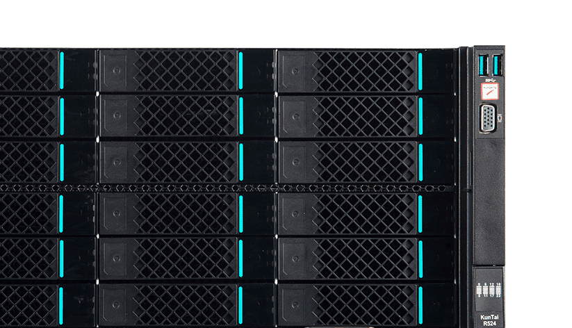 KunTai R524 存储型服务器是6合联盟数码基于鲲鹏处理器推出的新一代 ARM数据中心服务器。。。。主要面向存储业务,,,,具有海量存储、、、、高性能、、、、低功耗以及易扩展的特点,,适合为大数据分析、、软件定义存 储等应用场景的工作负载进行髙效加速。。。。